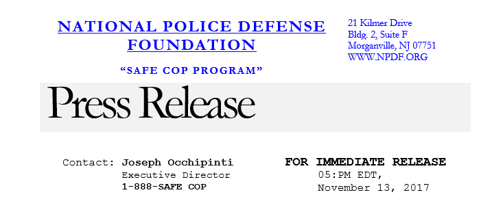 Morganville, NJ, NOVEMBER 13, 2017: Executive Director Joseph Occhipinti announced the posting of the $10,000 Safe Cop Reward involving the armed assault on Cordele Police Officer Brian Lewis.