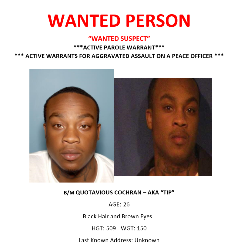 An investigation has identified the suspect as Quotavious Cochran AKA “Tip”, 26 years old with no known address. Cochran is a suspected gang member with an outstanding parole warrant and should be considered armed and dangerous.