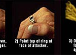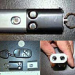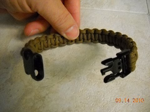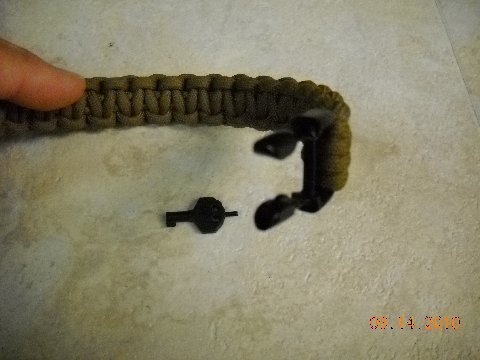These are photographs of a wrist band (bracelet) which is being sold by flea markets along the grand strand. You see many people wearing these as I guess they are popular right now. Not all the bracelets have the handcuff keys in them. However, all officers need to be aware of this so you can check prisoners when you place handcuffs on them. If in doubt, remove the bracelet from the prisoner after placing handcuffs on them and turn in the bracelet to the booking officer when you arrive at the jail. The keys are plastic so they will not show up on x-rays; however, the key did open a pair of our handcuffs. With a little practice, one can be handcuffed and still access the key in the bracelet.