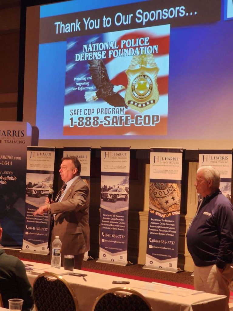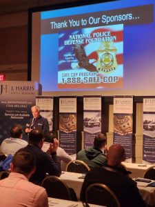 Members of the National Police Defense Foundation attended New Jersey Annual Training Conference, sponsored by J. Harris Academy of Police Training at the Golden Nugget Hotel and Casino in Atlantic City. In addition to sponsoring the conference’s lunch, the NPDF had a table set up at the event and Executive Director Joe Occhipinti and Director of Programs and Services Mike Barry had an opportunity to briefly address the crowd of officer’s attending to talk about the Foundation’s accomplishments. NPDF Event Planner Janice Arbital and Michelle Rizzo did a splendid job of putting the event together and it was considered to be a great success.