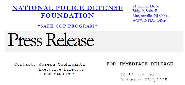 The National Police Defense Foundation is an IRS designated 501 (c) (3) non-profit organization under registration number 13-3830191. Please support the NPDF’s Safe Cop Program with your fully tax-deductible donations.
