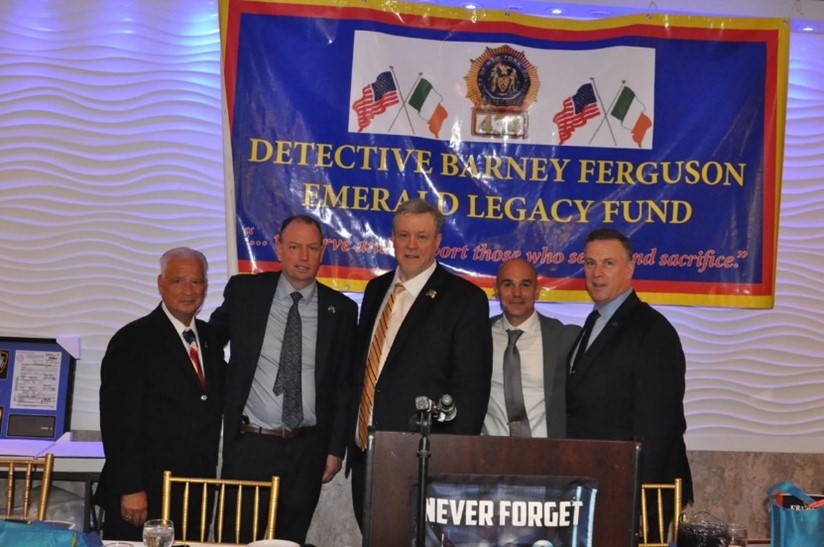 NPDF Executive Director SSA Joseph Occhipinti (Ret), NYPD PBA President Patrick Hendry, Commissioner James Ferguson, Peter Whelan, Past President NYPD Emerald Society and NYPD/FBI Human Trafficking Task Force P.O. John Zerafa.